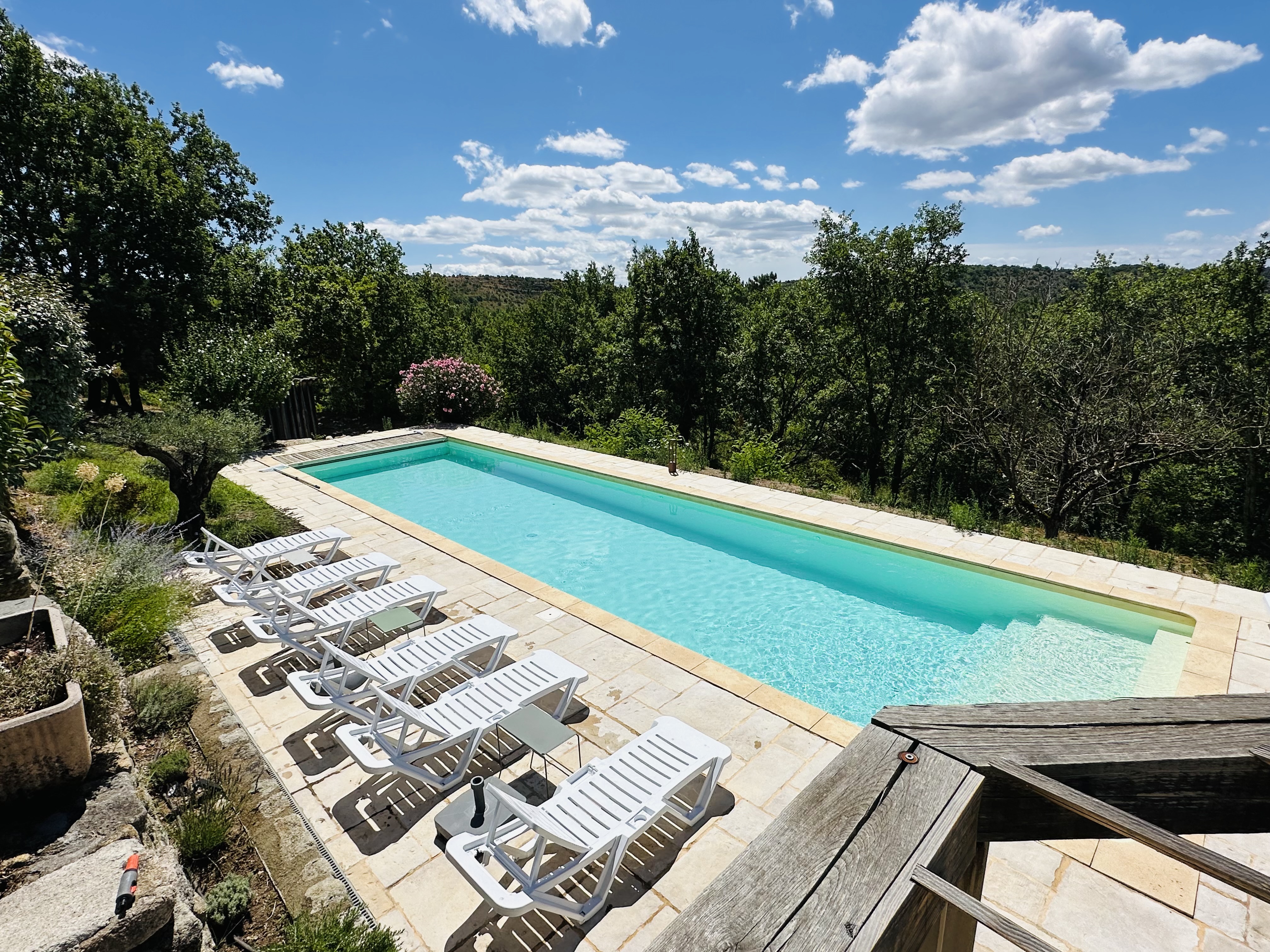 La piscine chauffée de 15 mètres de long, avec grande marche bassin pour les tout-petits, et électrolyseur au sel est sécurisée par un volet roulant immergé. Elle est entourée de terrasses avec chaises longues, la terrasse a été entièrement rénovée avec dalles en pierre et pool house en 2024.