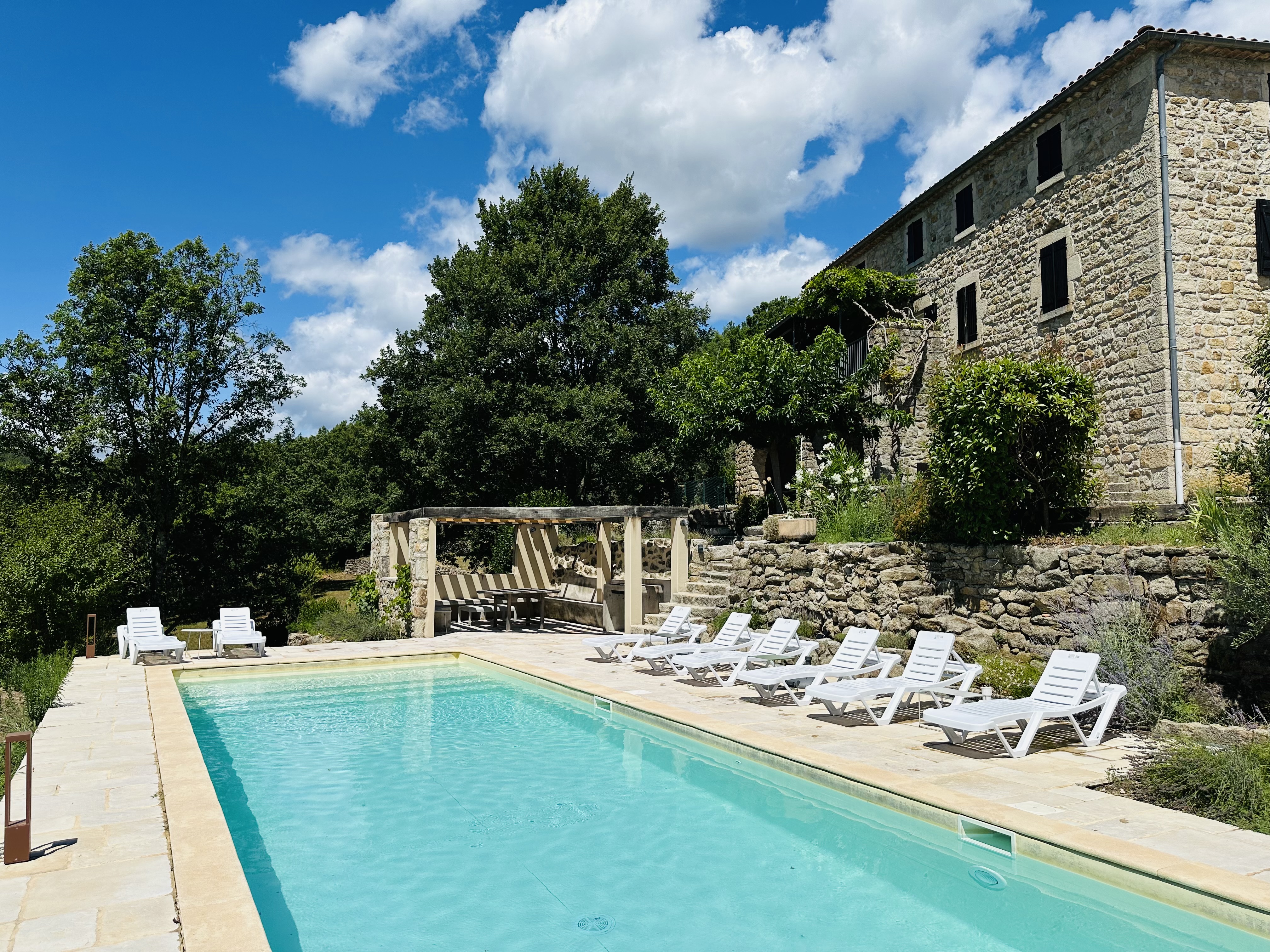 L’exposition est plein sud, sans vis-à-vis, avec une vue complètement dégagée sur la campagne environnante et les contreforts des Cévennes.